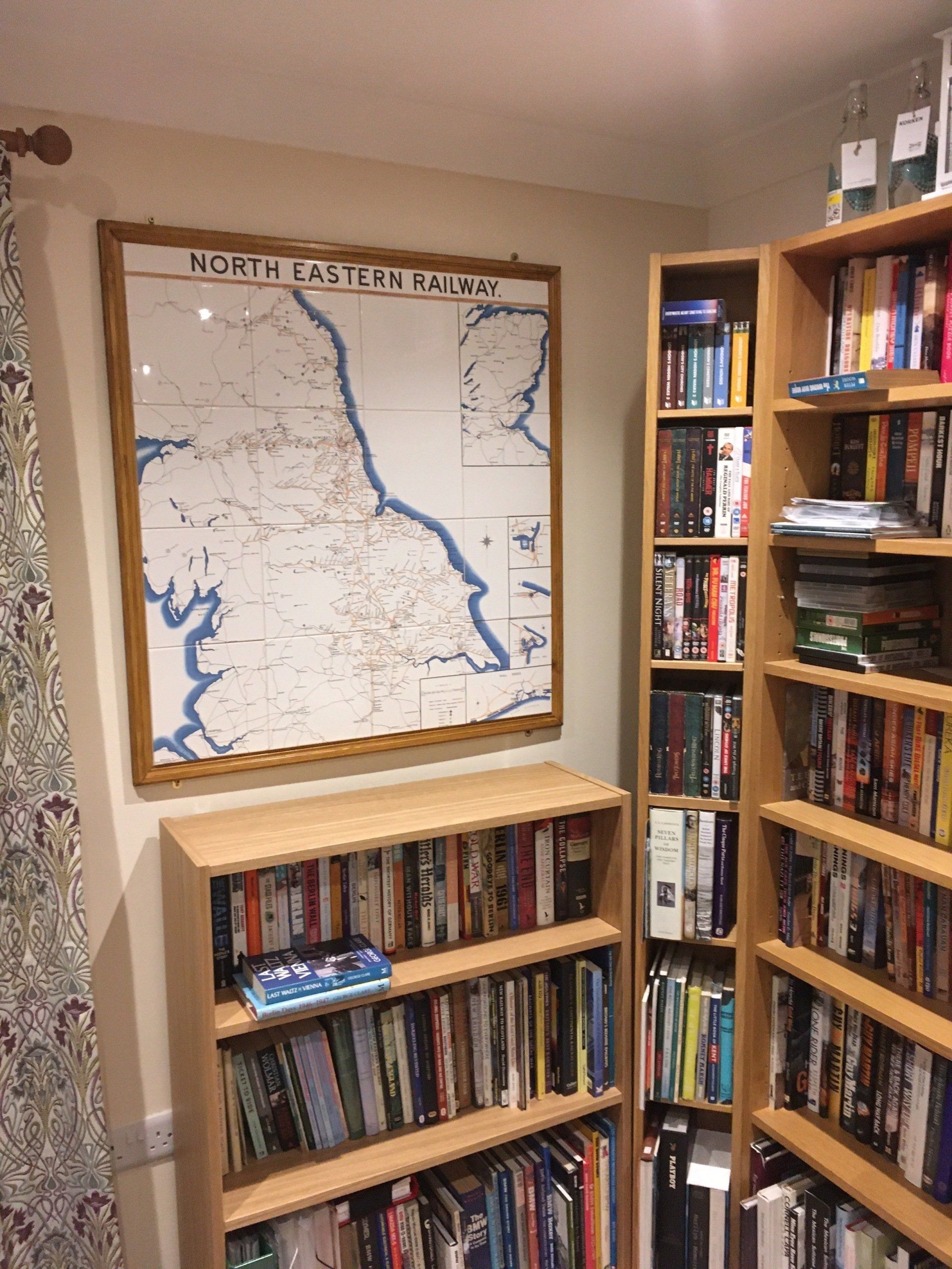 The latter is much more suitable for private houses, since the base of the panel needs to be about 18” (450mm) above floor level for the map to show to maximum effect, and not many houses have the ceiling height of over 9’ (2750mm) that would be needed to centralise the full size map on the wall!